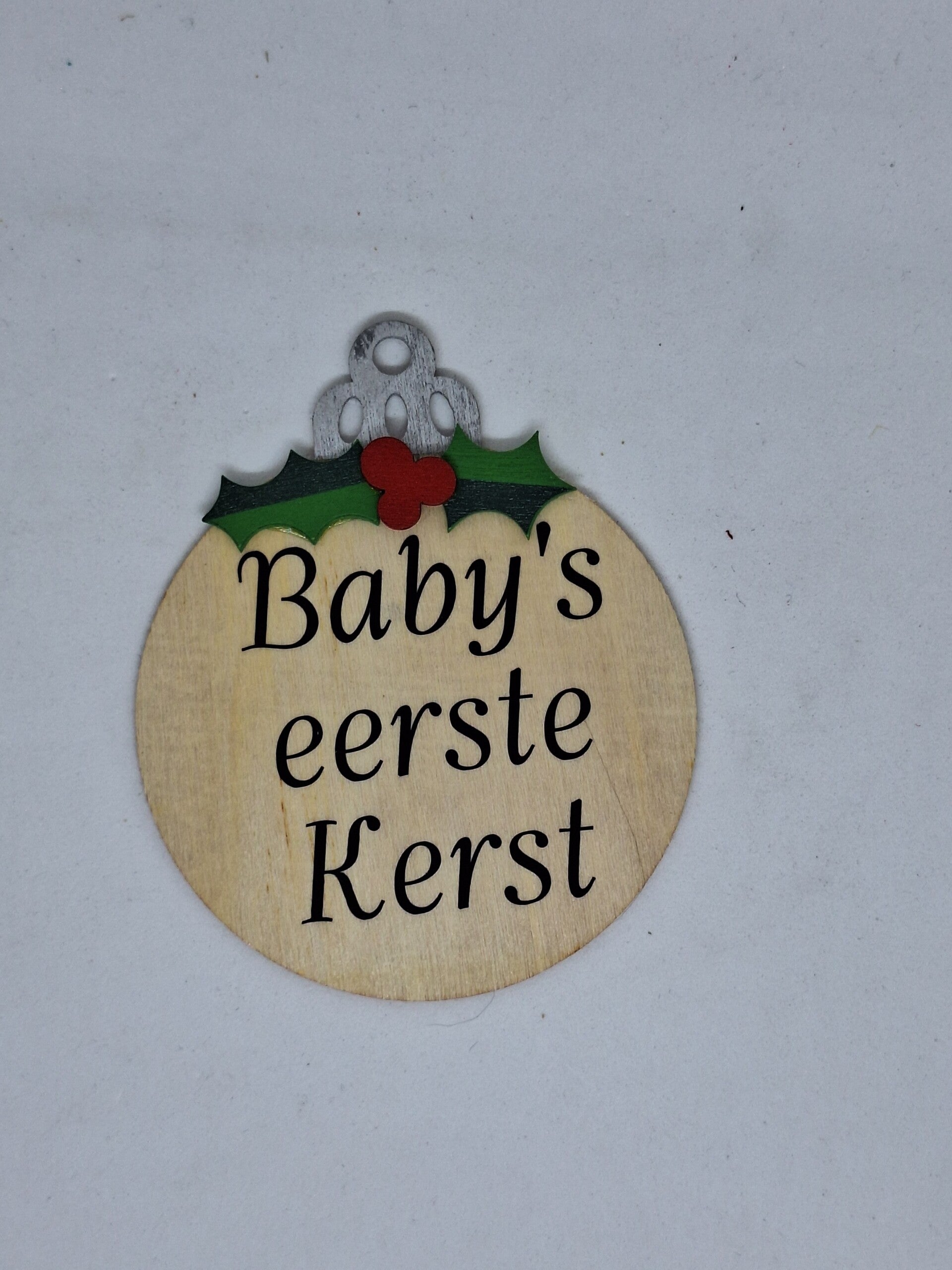 Houten kerstbal met opdruk "Babys eerste kerst".