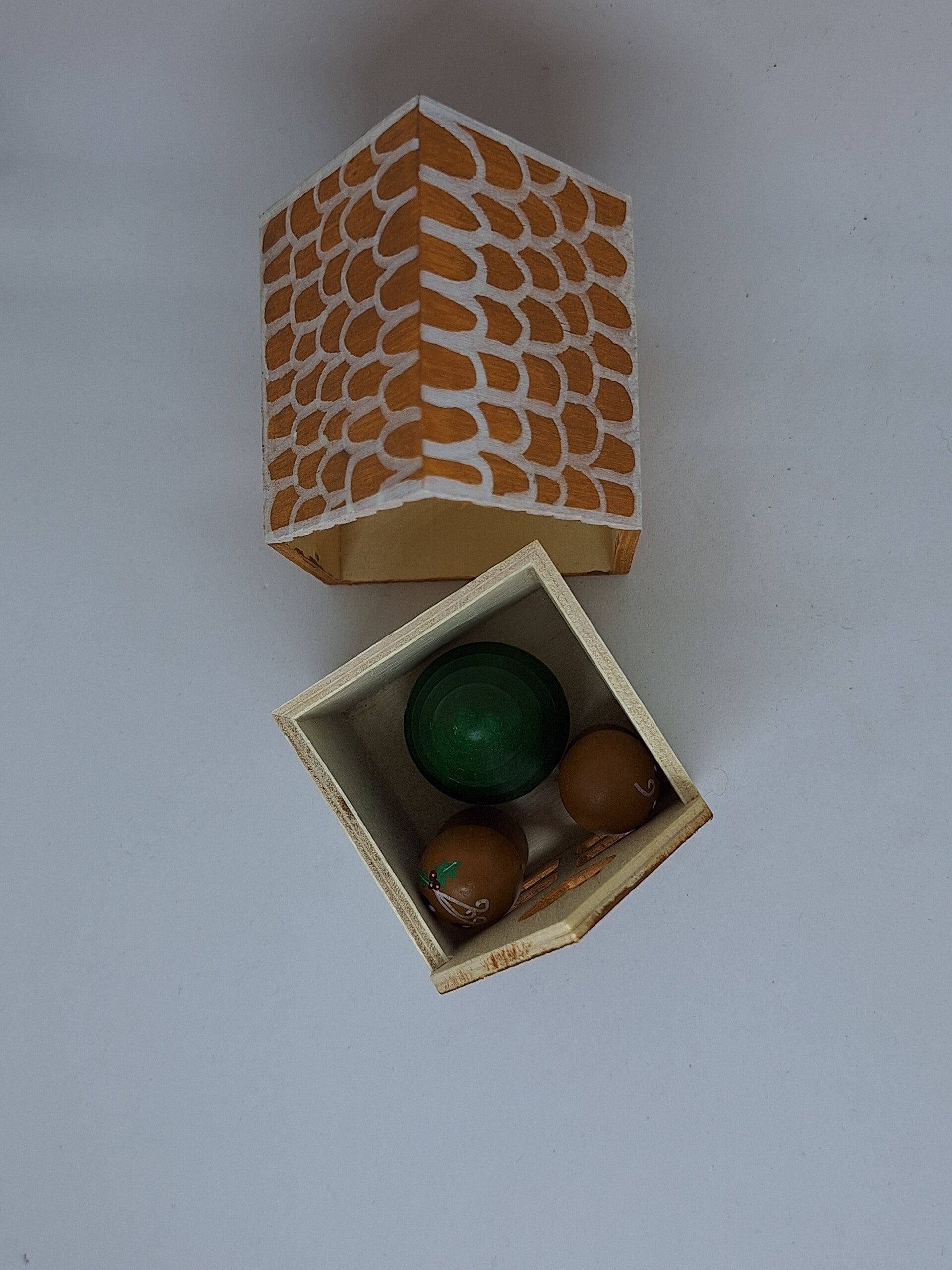Het huisje kan opengeschoven worden om de popjes en boom op te bergen, er kan ook een ledlichtje in geplaatst worden voor een sfeervol effect.